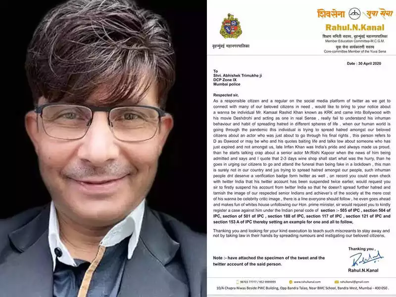 മുംബൈ: ബോളിവുഡ് നടനും വിമർശകനുമായ കമാൽ ആർ ഖാൻ എന്ന കെആർകെ അറസ്റ്റിൽ. 2020 ൽ ട്വിറ്ററിൽ നടത്തിയ വിവാദ പരാമർശങ്ങളുടെ പേരിലാണ് അറസ്റ്റ്. യുവസേനാംഗമായ രാഹുൽ കാനാലിന്റെ പരാതിയിൽ മുംബൈയിലെ മലാഡ് പൊലീസാണ് കമാൽ ഖാനെ അറസ്റ്റ് ചെയ്തത്. 2020 ൽ നടൻമാരായ ഇർഫാൻ ഖാൻ, ഋഷി കപൂർ എന്നിവർക്കെതിരെ അപകീർത്തികരമായ പരാമർശം നടത്തിയതാണ് കമാൽ ഖാന്റെ അറസ്റ്റിന് കാരണമായത്. സംഭവത്തെ തുടർന്ന് പൊലീസ് കമാൽ ഖാനെതിരെ പ്രഥമ വിവര റിപ്പോർട്ട് (എഫ്ഐആർ) രജിസ്റ്റർ ചെയ്യുകയും ലുക്ക് ഔട്ട് നോട്ടീസ് പുറപ്പെടുവിക്കുകയും ചെയ്തിരുന്നു. ഇന്ത്യൻ ശിക്ഷാ നിയമത്തിലെ 153 എ, 294, 500, 501, 505, 67, 98 എന്നീ വകുപ്പുകൾ പ്രകാരമാണ് കേസ് രജിസ്റ്റർ ചെയ്തിരിക്കുന്നത്. മുംബൈ പോലീസിന്റെ ഈ നടപടിയെ സ്വാഗതം ചെയ്യുന്നതായി പരാതിക്കാരൻ പറഞ്ഞു. കെആർകെ സോഷ്യൽ മീഡിയയിലൂടെ അപകീർത്തികരമായ പരാമർശങ്ങൾ നടത്തുകയും അനുചിതമായ ഭാഷ ഉപയോഗിക്കുകയും ചെയ്തു. അത്തരമൊരു മനോഭാവം സമൂഹത്തിന് ഒരിക്കലും അംഗീകരിക്കാൻ കഴിയില്ല. കെആർകെയെ അറസ്റ്റ് ചെയ്തതിലൂടെ മുംബൈ പോലീസ് ഇത്തരക്കാർക്ക് ശക്തമായ സന്ദേശമാണ് നൽകിയതെന്നും അദ്ദേഹം കൂട്ടിച്ചേർത്തു.